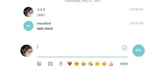 Jalankan script diatas lalu cek pesan masuk dari bot yang telah dibuat, nanti akan menampilkan pesan ‘Hello world’.