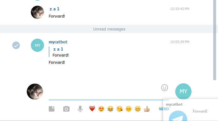 Lakukan mengirim pesan lagi kepada bot, contoh 'Forward!'.
